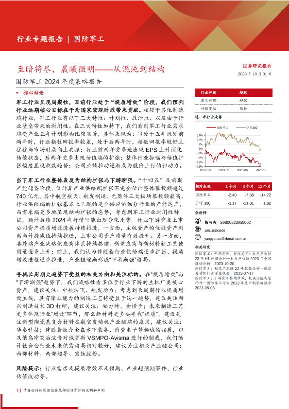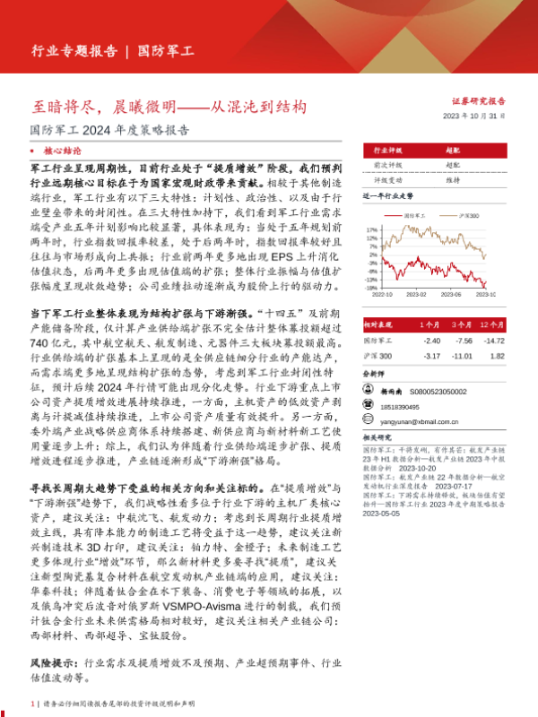 【西部证券】【20231031】国防军工行业2024年度策略报告:至暗将尽,晨曦微明,从混沌到结构-22页