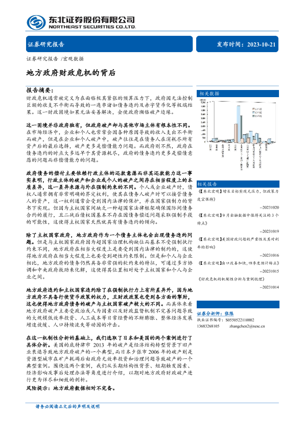 债务违约 地方政府 宏观经济 政策分析 财政危机
