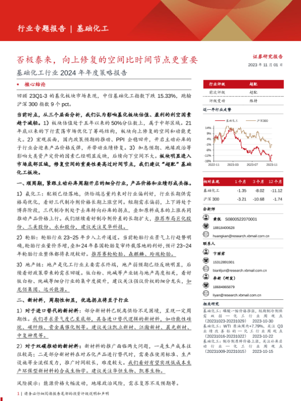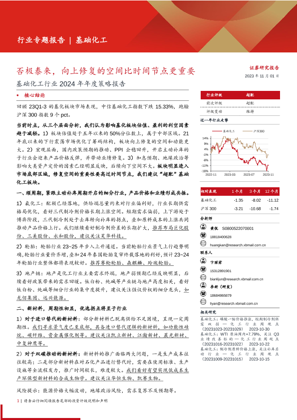 【西部证券】【20231101】基础化工行业2024年年度策略报告:否极泰来,向上修复的空间比时间节点更重要-42页