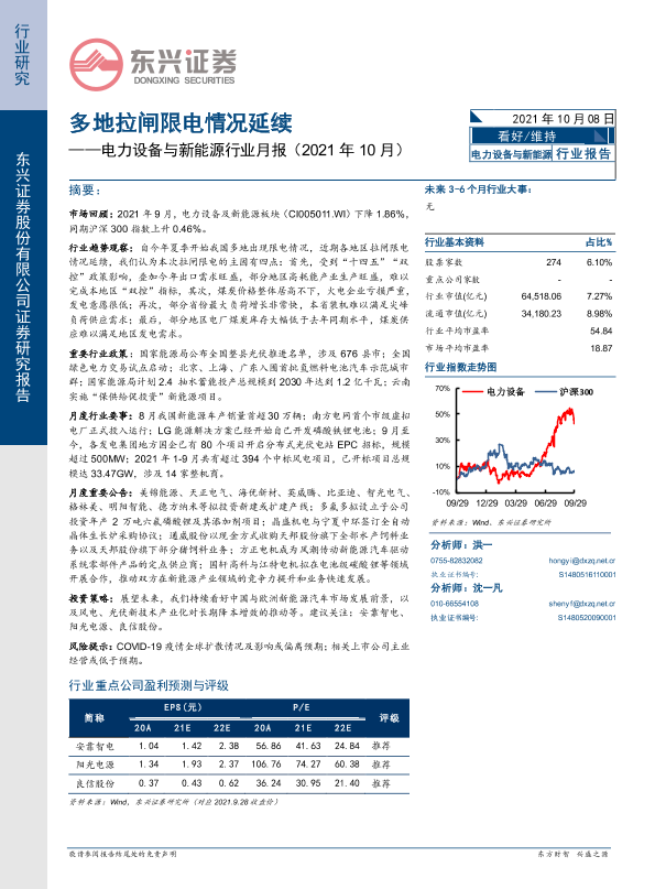 【东兴证券】【20211008】电力设备与新能源行业月报(2021年10月):多地拉闸限电情况延续-19页