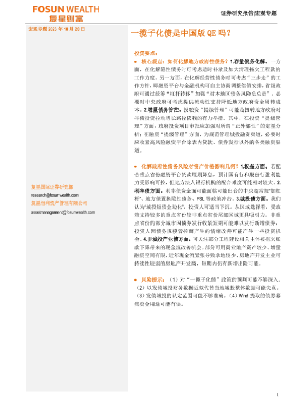 【复星恒利】【20231020】宏观专题:一揽子化债是中国版QE吗?-18页