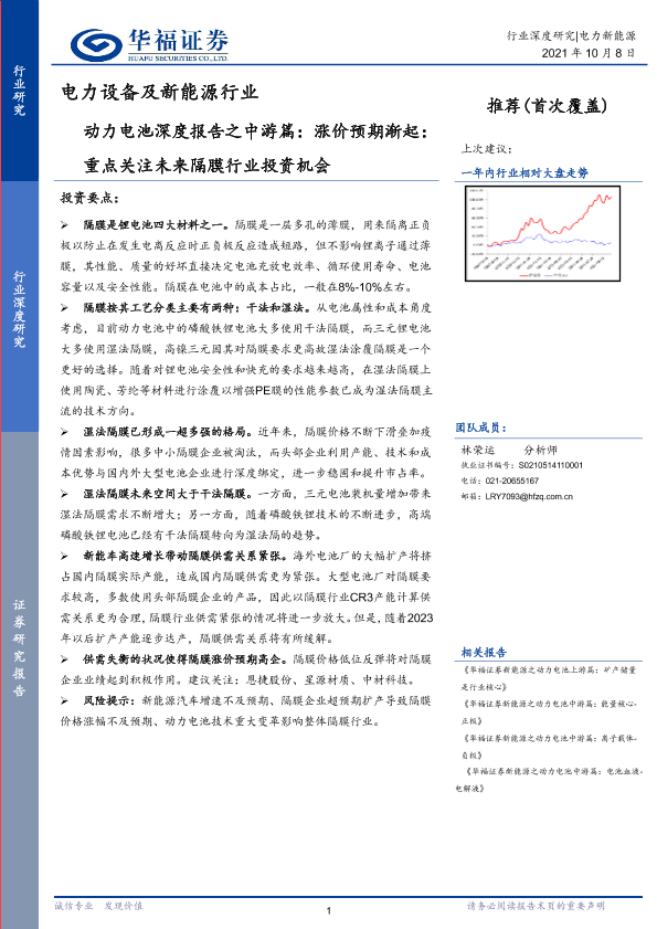 【华福证券】【20211008】电力设备及新能源行业动力电池深度报告之中游篇:涨价预期渐起,重点关注未来隔膜行业投资机会-19页