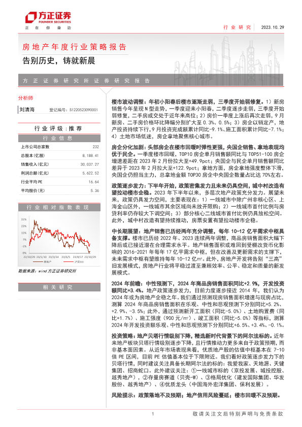 【方正证券】【20231029】房地产年度行业策略报告:告别历史,重铸新晨-50页