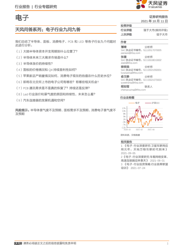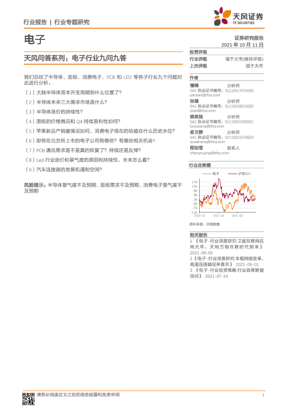 【天风证券】【20211011】电子行业天风问答系列:电子行业九问九答-26页