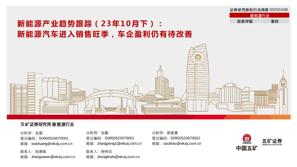 【五矿证券】【20231030】新能源行业产业趋势跟踪(23年10月下):新能源汽车进入销售旺季,车企盈利仍有待改善-51页