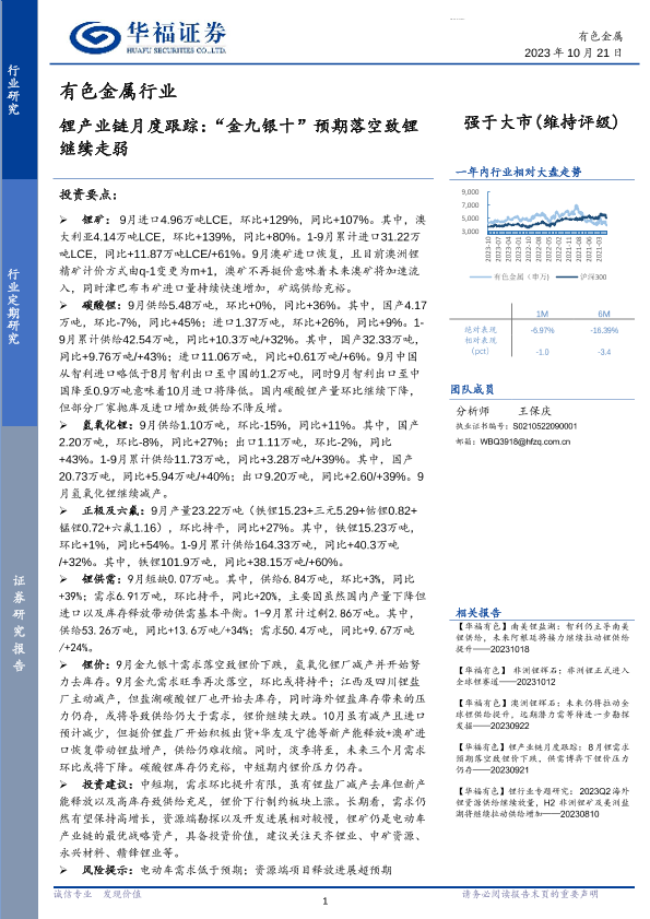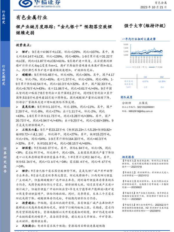 【华福证券】【20231021】有色金属行业锂产业链月度跟踪:“金九银十”预期落空致锂继续走弱-18页