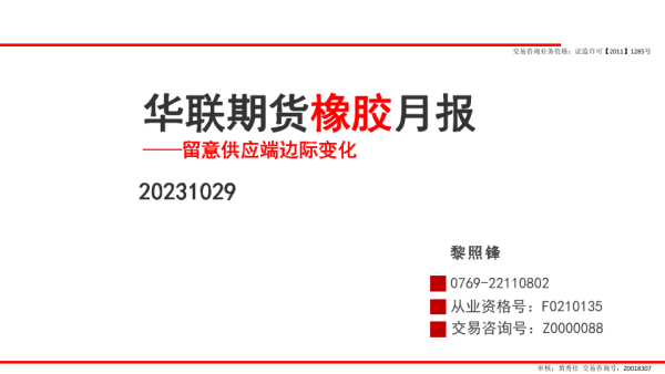 【华联期货】【20231029】橡胶月报:留意供应端边际变化-31页