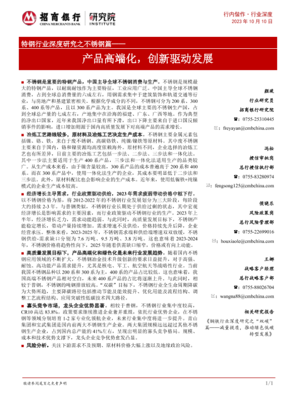 【招商银行】【20231010】特钢行业深度研究之不锈钢篇:产品高端化,创新驱动发展-31页