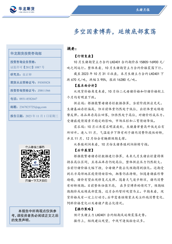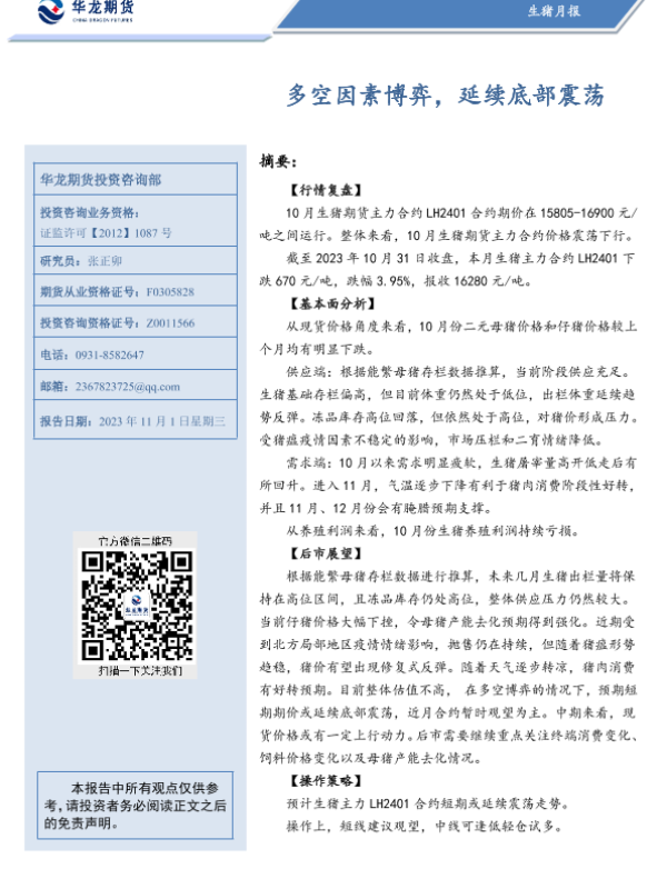【华龙期货】【20231101】生猪月报:多空因素博弈,延续底部震荡-21页