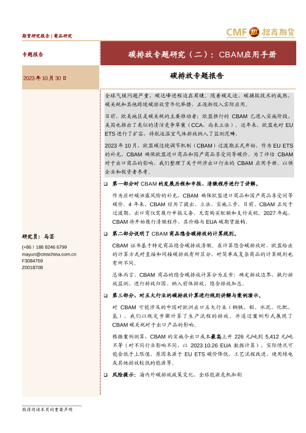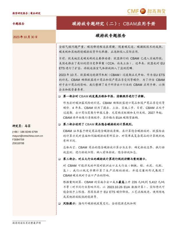 【招商期货】【20231030】碳排放专题报告:碳排放专题研究(二),CBAM应用手册-29页