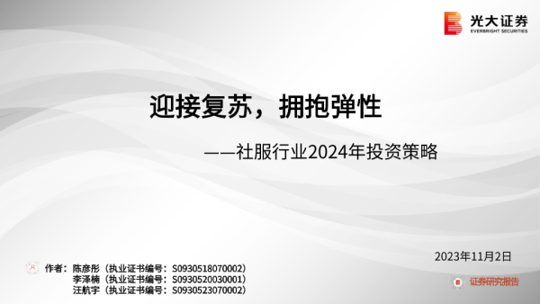 【光大证券】【20231102】社服行业2024年投资策略:迎接复苏,拥抱弹性-42页
