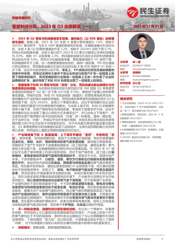 【民生证券】【20231101】策略专题研究:重塑利润分配,2023年Q3业绩解读(一)-39页