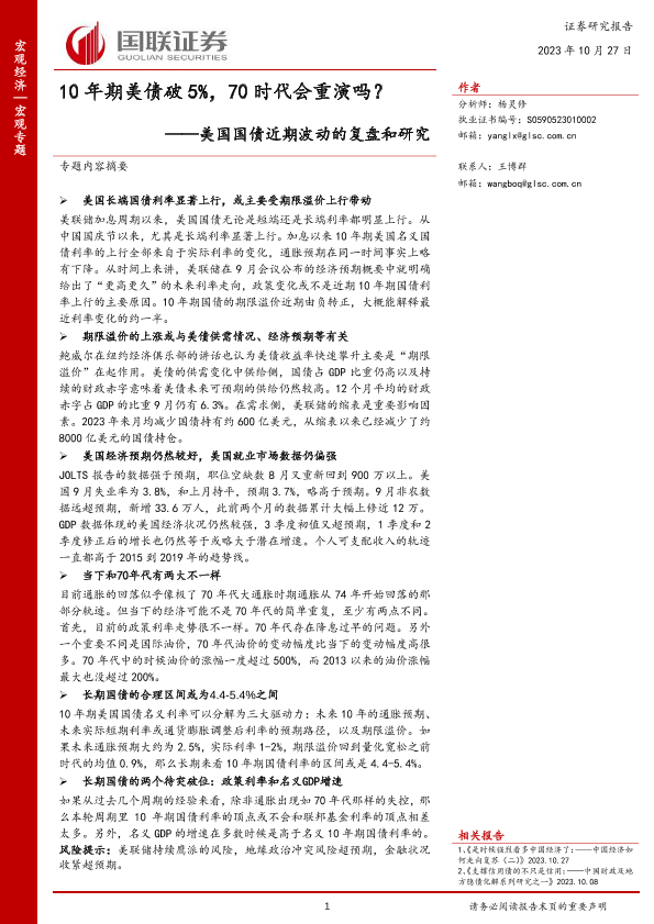 【国联证券】【20231027】美国国债近期波动的复盘和研究:10年期美债破5%,70时代会重演吗?-38页