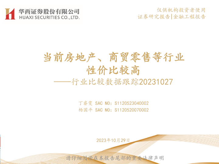 【华西证券】【20231029】行业比较数据跟踪:当前房地产、商贸零售等行业性价比较高-22页