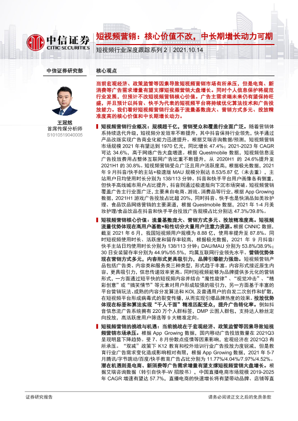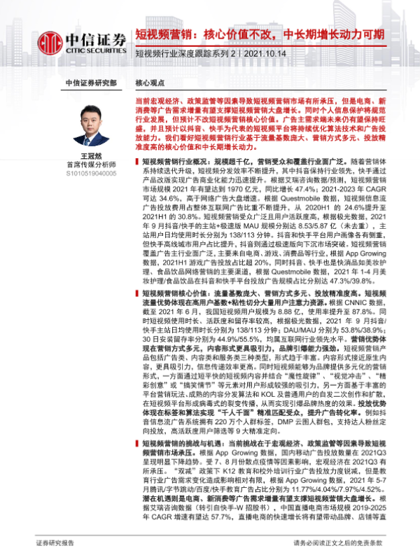 【中信证券】【20211014】短视频行业深度跟踪系列2:短视频营销,核心价值不改,中长期增长动力可期-43页