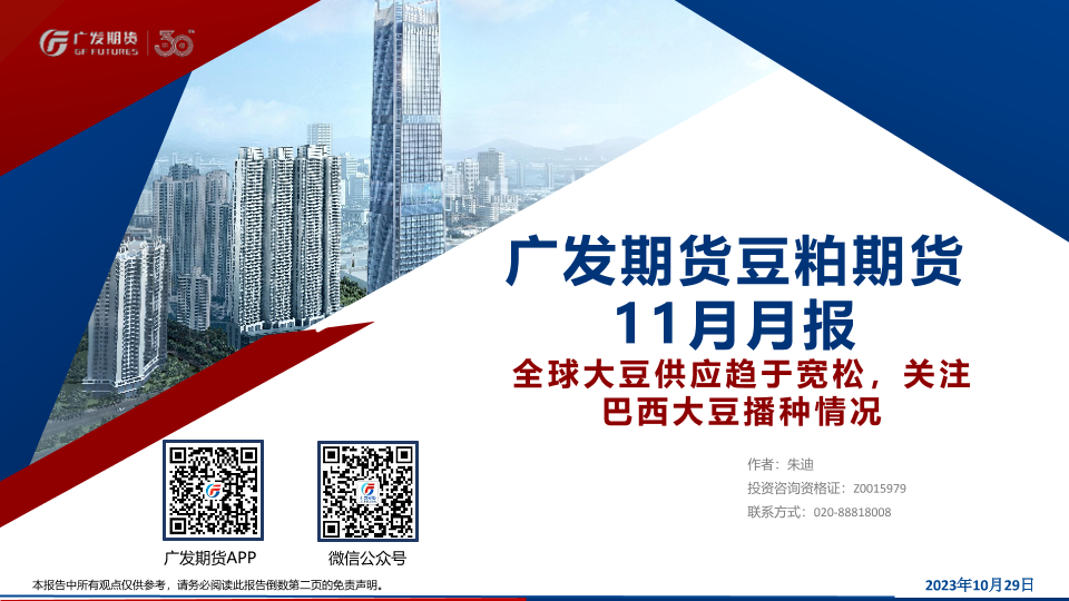 【广发期货】【20231029】豆粕期货11月月报:全球大豆供应趋于宽松,关注巴西大豆播种情况-31页