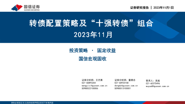 【国信证券】【20231101】转债配置策略及“十强转债”组合2023年11月-30页