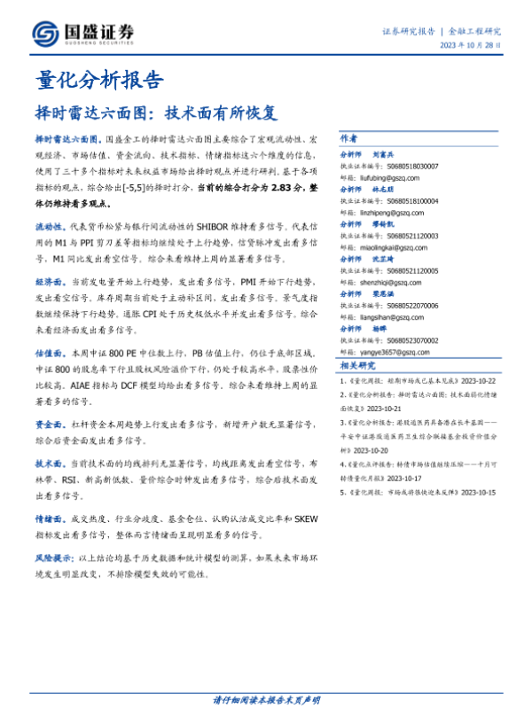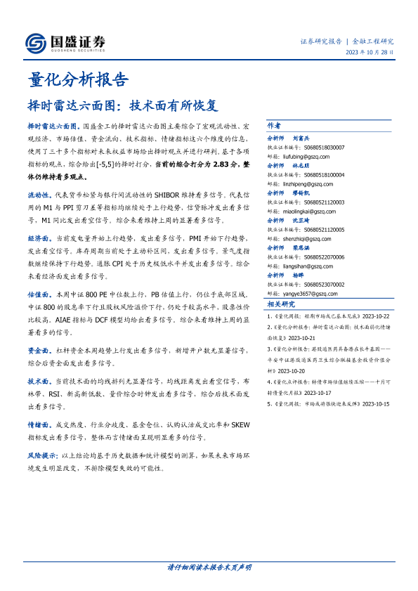 【国盛证券】【20231028】量化分析报告:择时雷达六面图,技术面有所恢复-23页