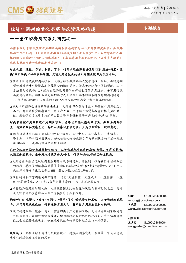 【海通证券】【20231027】量化经济周期系列研究之一:经济中周期的量化拆解与投资策略构建-39页