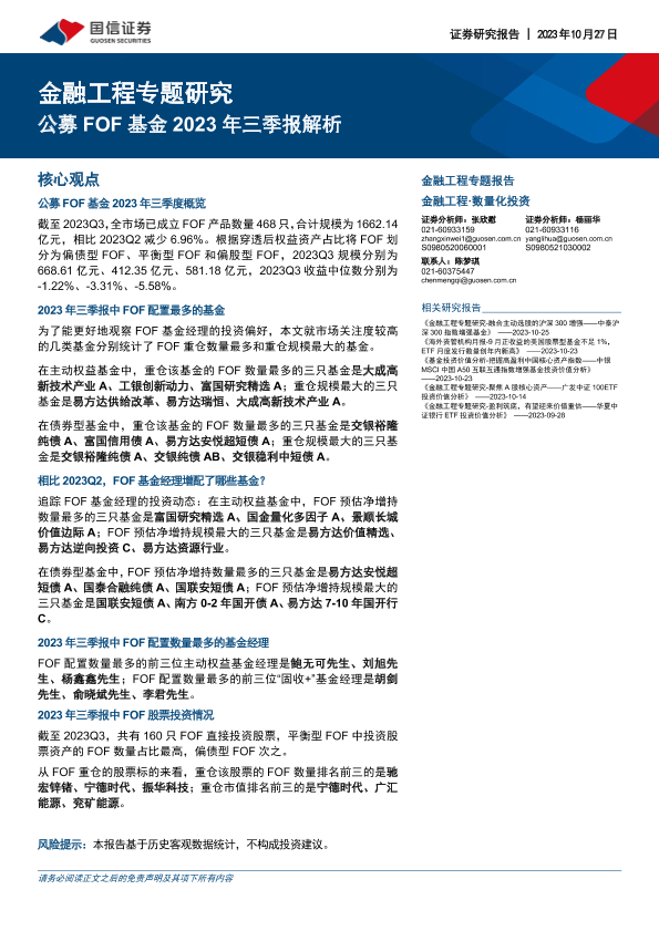 【国信证券】【20231027】金融工程专题研究:公募FOF基金2023年三季报解析-20页