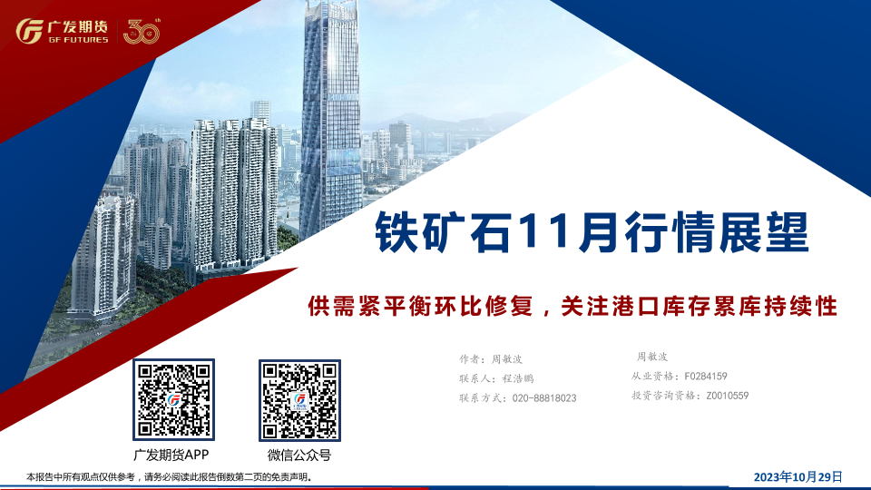 【广发期货】【20231029】铁矿石11月行情展望:供需紧平衡环比修复,关注港口库存累库持续性-35页