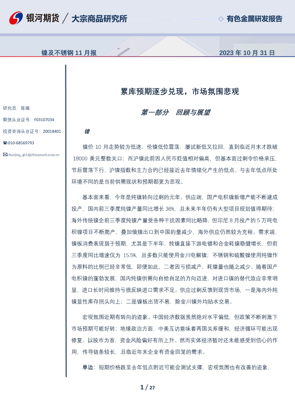 【银河期货】【20231031】镍及不锈钢11月报:累库预期逐步兑现,市场氛围悲观-27页