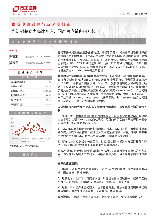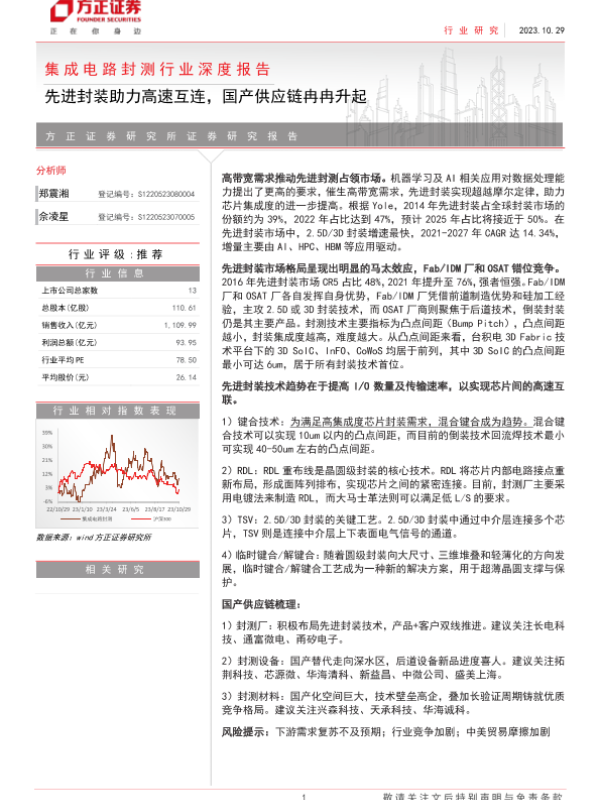 【方正证券】【20231029】集成电路封测行业深度报告:先进封装助力高速互连,国产供应链冉冉升起-38页