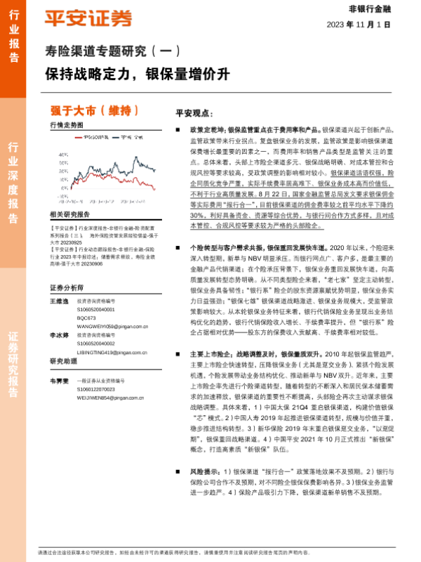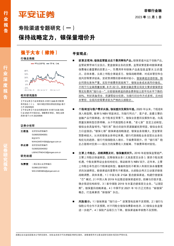 【平安证券】【20231101】非银行金融行业寿险渠道专题研究(一):保持战略定力,银保量增价升-23页