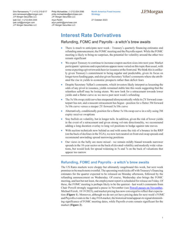 【J.P. Morgan】【20231027】FI-Interest Rate Derivatives Refunding, FOMC and Payrolls-19页