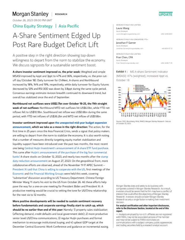 【Morgan Stanley】【20231025】China Equity Strategy A-Share Sentiment Edged Up Post Rare Budget Deficit Lift-11页