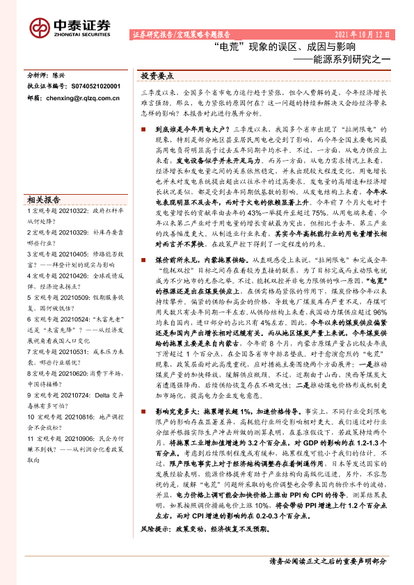 【中泰证券】【20211012】能源系列研究之一:“电荒”现象的误区、成因与影响-15页