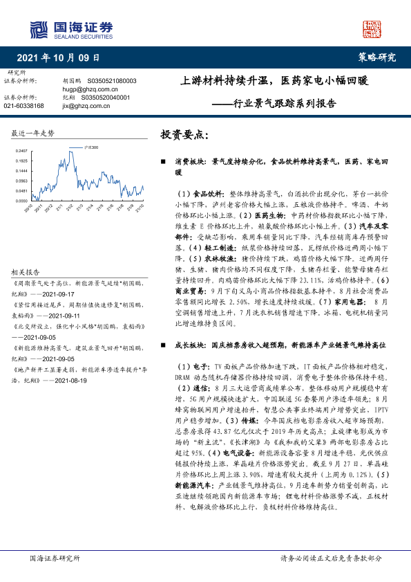 【国海证券】【20211009】行业景气跟踪系列报告:上游材料持续升温,医药家电小幅回暖-44页