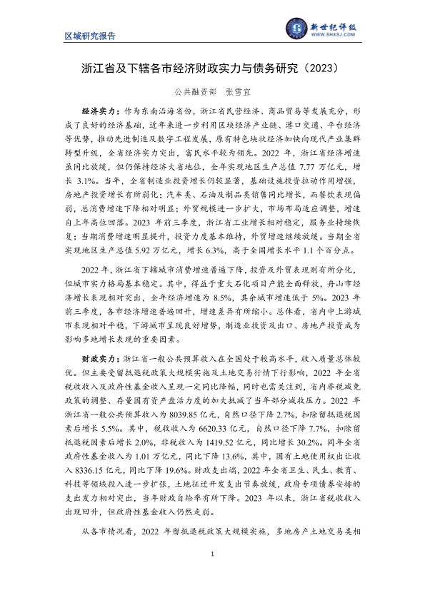 2023 债务状况 区域研究 浙江省经济 财政实力