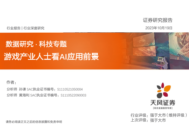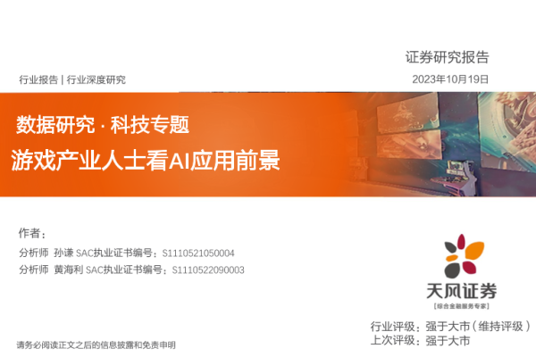 【天风证券】【20231019】数据研究·科技行业专题:游戏产业人士看AI应用前景-43页