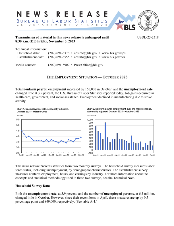 【美国劳工统计局】【202310】THE EMPLOYMENT SITUATION — OCTOBER 2023-39页