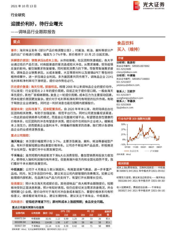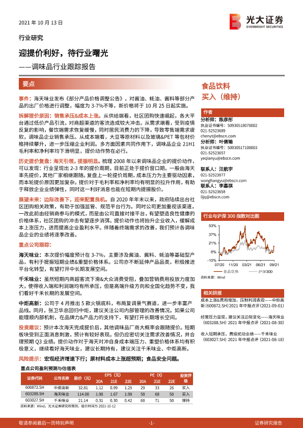 【光大证券】【20211013】调味品行业跟踪报告:迎提价利好,待行业曙光-19页