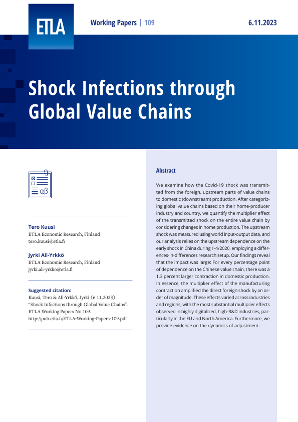 【芬兰经济研究所 (ETLA Economic Research)】【20231006】通过全球价值链的休克感染-30页
