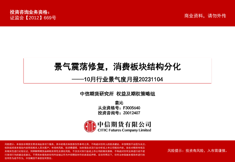 【中信期货】【20231104】10月行业景气度月报:景气震荡修复,消费板块结构分化-59页