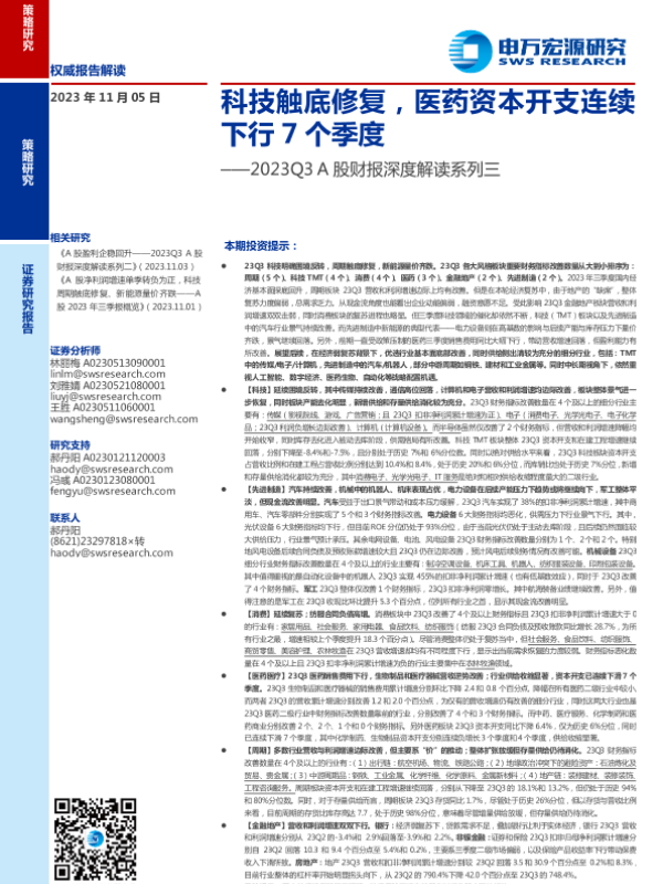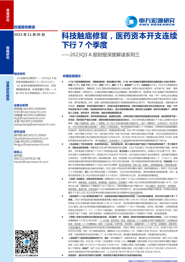 【申万宏源】【20231105】2023Q3 A股财报深度解读系列三:科技触底修复,医药资本开支连续下行7个季度-28页