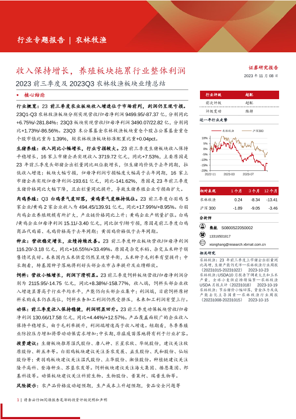 【西部证券】【20231108】2023前三季度及2023Q3农林牧渔板块业绩总结:收入保持增长,养殖板块拖累行业整体利润-28页