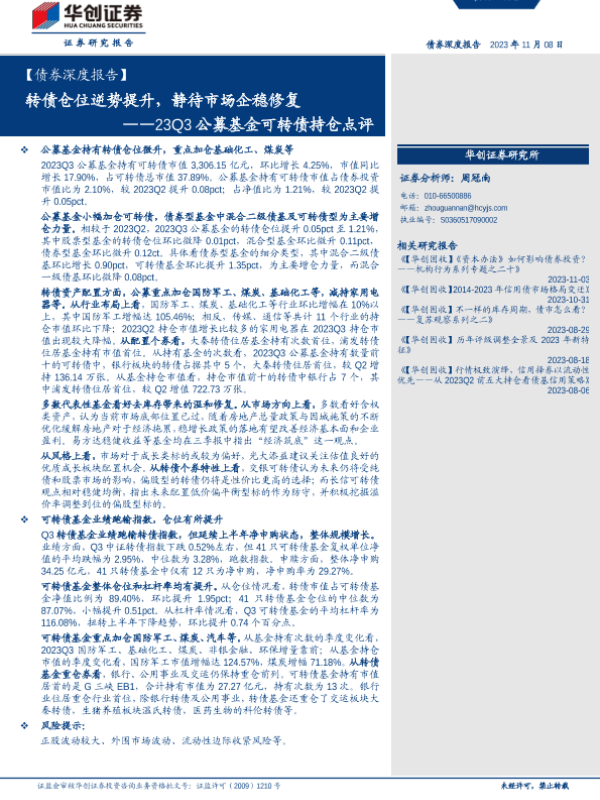【华创证券】【20231108】23Q3公募基金可转债持仓点评:转债仓位逆势提升,静待市场企稳修复-25页