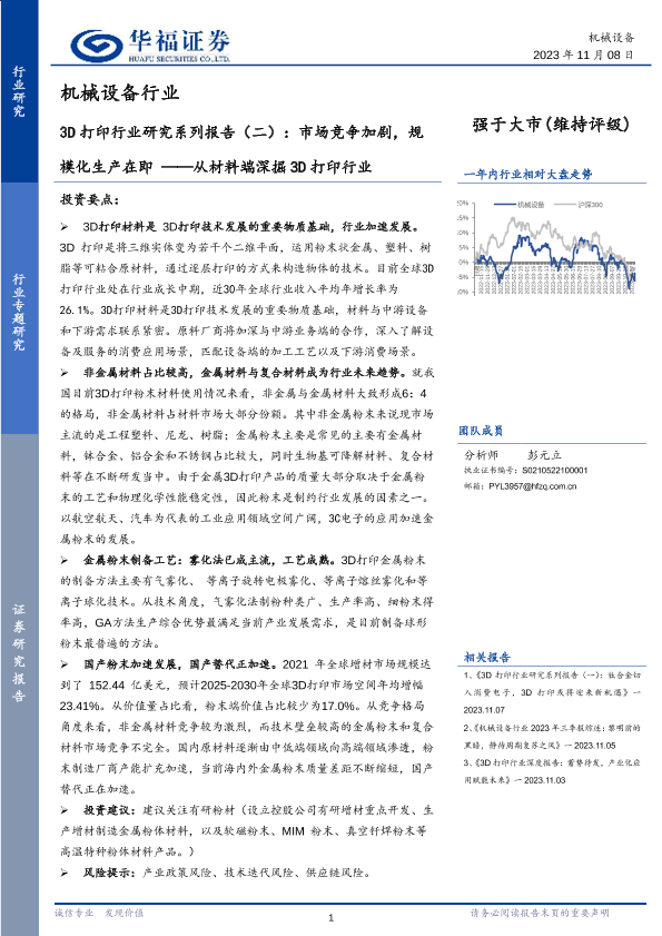【华福证券】【20231108】3D打印行业研究系列报告(二):市场竞争加剧,规模化生产在即,从材料端深掘3D打印行业-27页