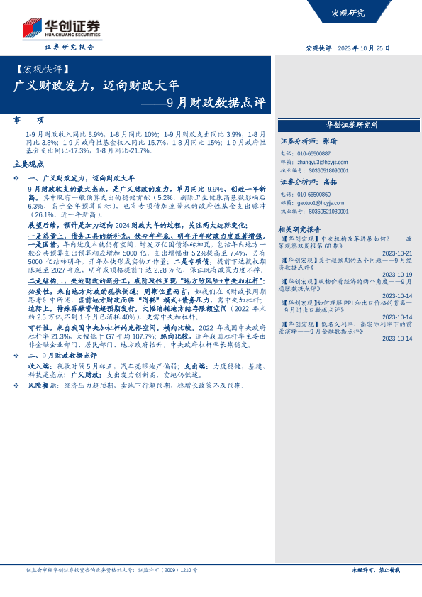 【华创证券】【20231025】9月财政数据点评:广义财政发力,迈向财政大年-15页