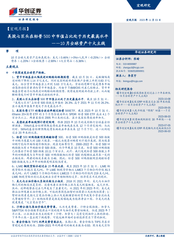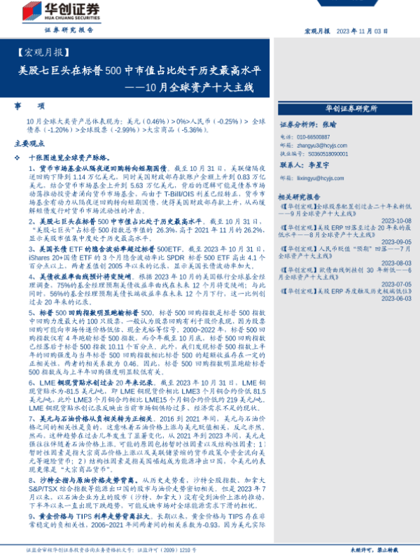 【华创证券】【20231103】10月全球资产十大主线:美股七巨头在标普500中市值占比处于历史最高水平-22页