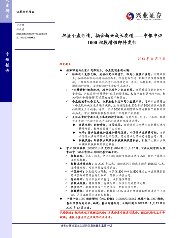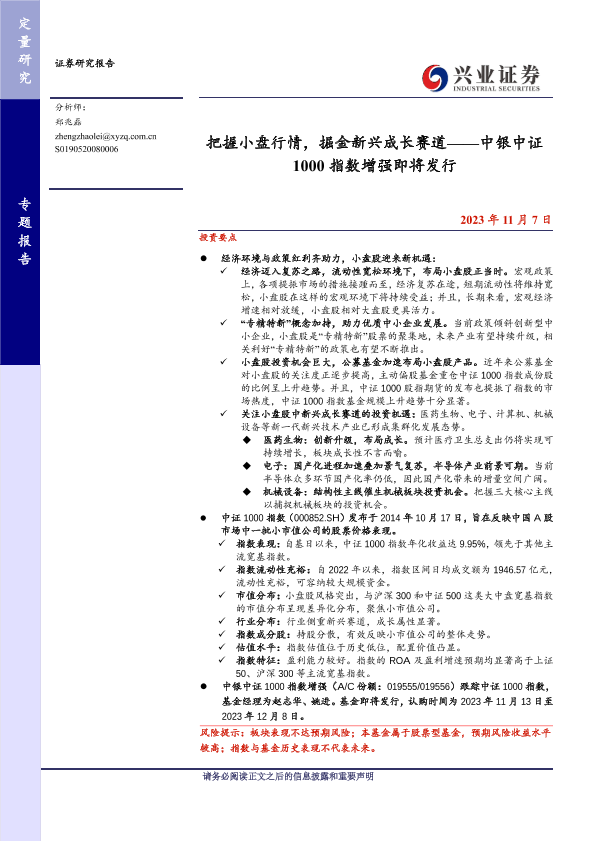 【兴业证券】【20231107】把握小盘行情,掘金新兴成长赛道——中银中证1000指数增强即将发行-27页