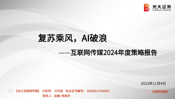 【光大证券】【20231104】互联网传媒行业2024年度策略报告:复苏乘风,AI破浪-61页