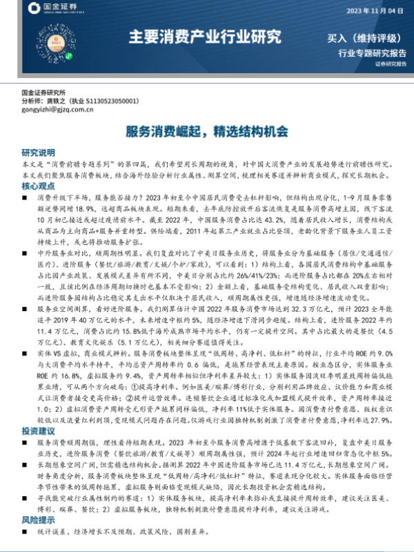 【国金证券】【20231104】主要消费产业行业研究:服务消费崛起,精选结构机会-22页