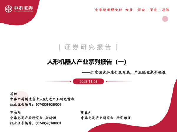 【中泰证券】【20231103】人形机器人产业系列报告(一):三重因素加速行业发展,产业链迎来新机遇-47页