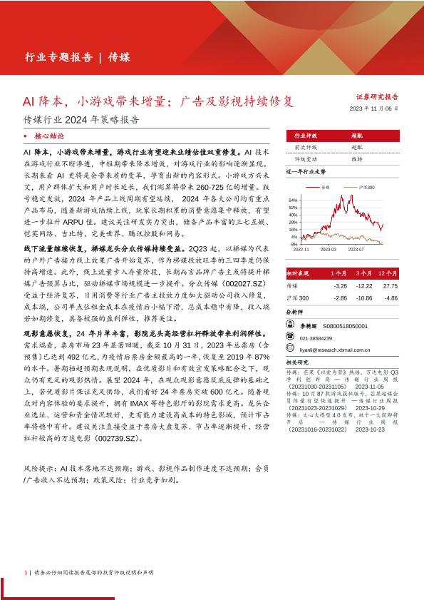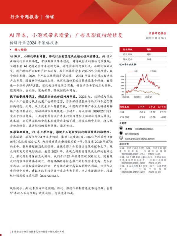 【西部证券】【20231106】传媒行业2024年策略报告:AI降本,小游戏带来增量;广告及影视持续修复-38页