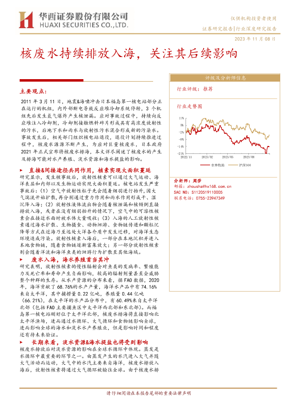 【华西证券】【20231108】农林牧渔行业:核废水持续排放入海,关注其后续影响-31页